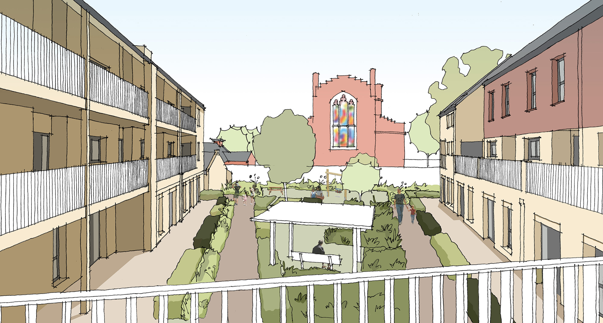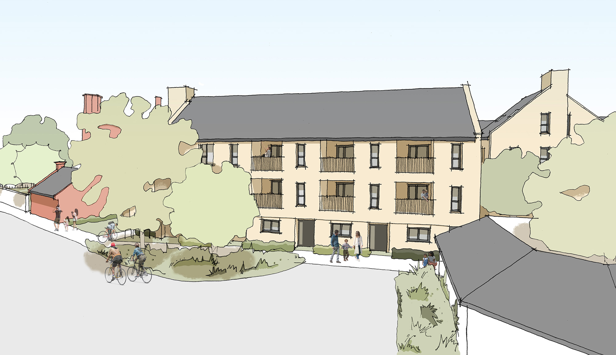 Nearly half of the site will become public open space, featuring play areas, walking routes and space for wildlife, creating a peaceful, sustainable and well-connected extension to the village.